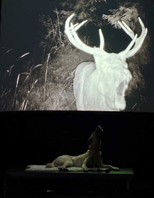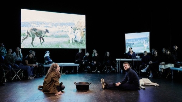 Leur dispositif nous encercle: multiples écrans, chiens présents sur le plateau, témoignages bruts. On entre dans cette clairière scénique comme on pénètre un territoire interdit, avec cette peur atavique de l’inconnu.