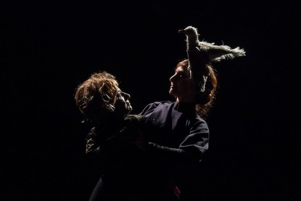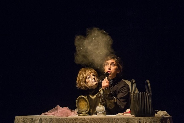 Les personnages de La Mouette de Tchekhov sont ainsi évoqués au cours de la périlleuse situation dans laquelle se trouve propulsée notre malheureuse marionnette, toujours accompagnée sur scène par Tita Iacobelli.