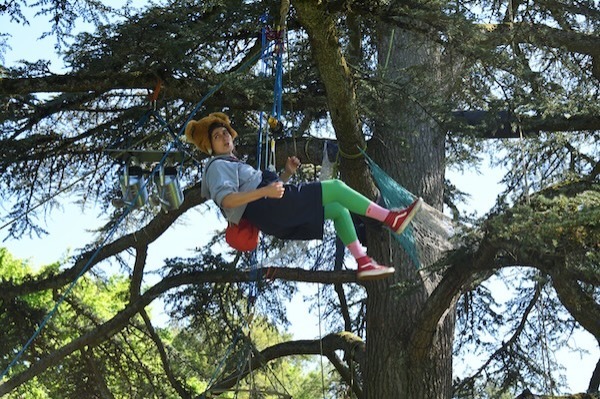 Perchée se joue littéralement au pied et dans les branches d’un arbre. Dès le début, nous avons collaboré avec Xavier Dejoux, éducateur spécialisé en grimpe d’arbres.