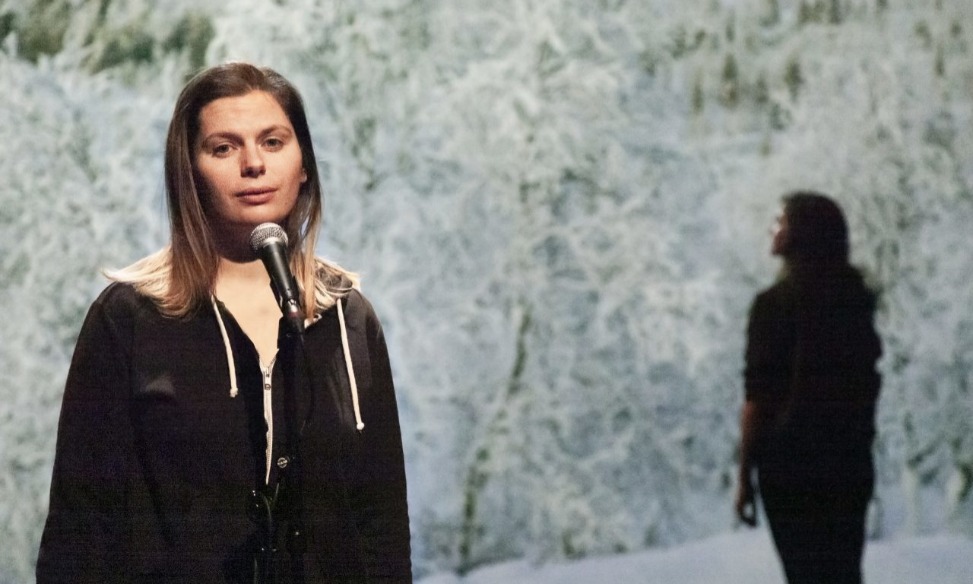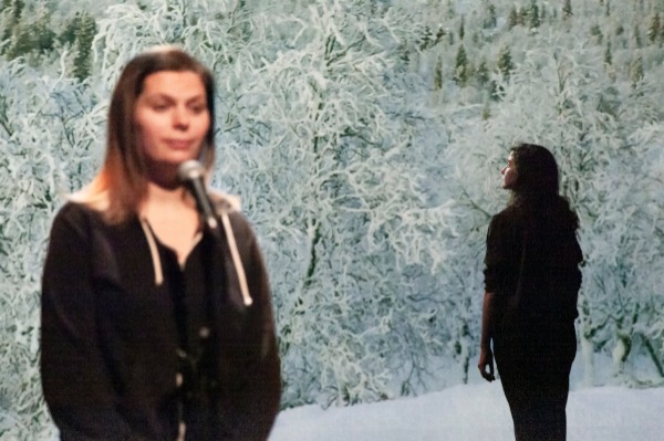 Cosima Weiter: L’idée initiale était de donner à entendre la voix de cette voyageuse décidant de s’en aller vers le Nord. Dans la mise en scène, il n’y avait pas l’envie de lui donner corps, visage et incarnation. Il fallait qu’elle reste dans cette présence et absence, ce double mouvement. Donner à entendre sa voix au travers d’un texte poétique m’a semblé essentiel.