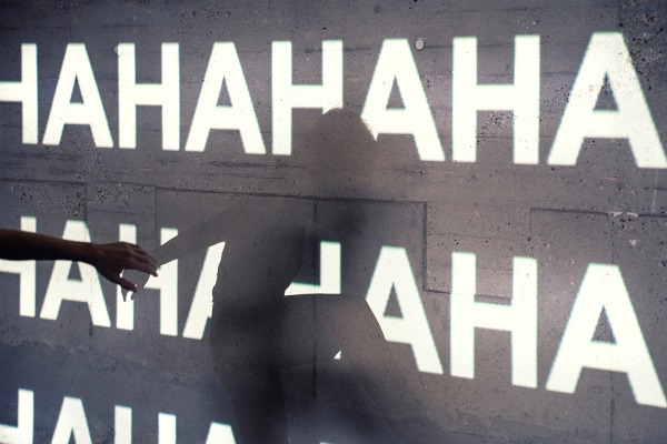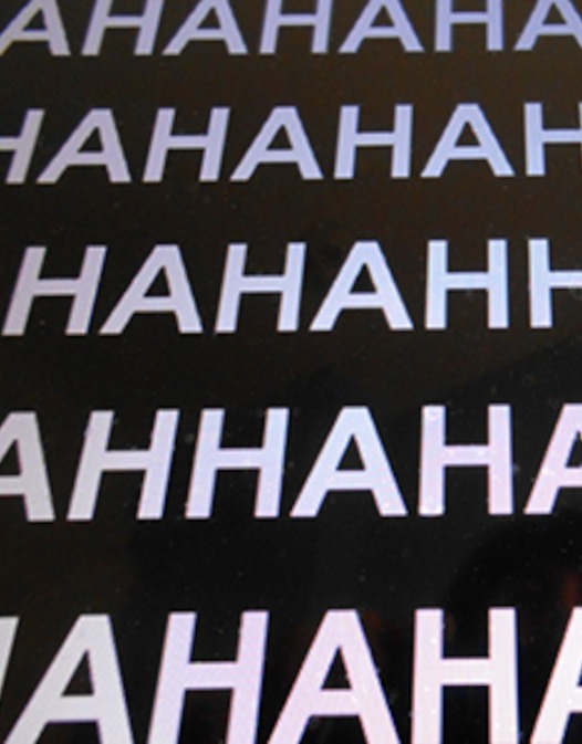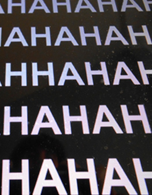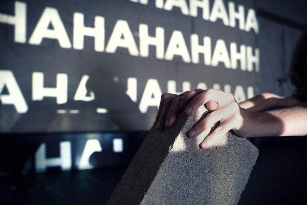 Dans le souci de ne pas rendre la performance trop crépusculaire, ce tsunami de "HAHAHA…" surgit comme un rire, peut être noir, suscitant un texte moins discursif et plus physique. Au final, on parvient à un effet très visuel.