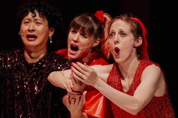 Du plaisir partagé au rire grinçant, de la complicité à la moquerie. Le tragicomique, ce territoire mouvant entre éclat de rire et vertige du désespoir, irrigue la pièce comme un fil rouge écarlate, éclaboussant les corps, les sons, les regards.