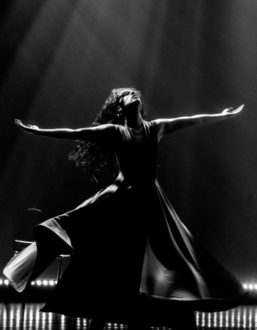 Donc la danse, et en particulier la danse mystique soufie a une place très importante dans la vie de Rûmî. Intégrer ses poèmes à la danse de Rana Gorgani, ça me semblait une évidence. J'ai ressenti une grande émotion en la regardant tourner, et une grande force dans ce qu'elle proposait, qui est une danse assez sobre finalement. Quand vous tournez sur vous-même, c'est certes répétitif, mais il y a une densité rare dans ce qu'elle fait, que j'ai trouvé intéressante à intégrer au programme.