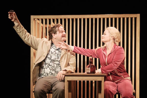 Comme Molière et Feydeau avant lui, De Vos se révèle un sagace anthropologue du quotidien fait couple. Ainsi dans le personnage féminin scotché au foyer. Elle attend l’homme pour qu’il lui fasse le récit de sa soirée alcoolisée.