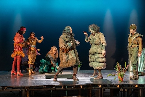 Nous avons ainsi les trois sorcières et deux autres personnages qui créent un chœur, un rapport permanent, via le langage ou les chants, avec le Père et la Mère Ubu.