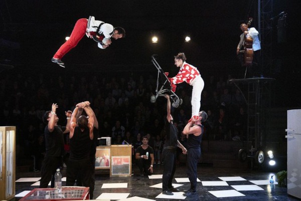 Oui. Il est écrit à destination d’un public enfants et familles. Mais Dans ton cœur permet de multiples lectures avec notamment des références cinématographiques, dont le cinéma muet où la musique raconte beaucoup. C’est ainsi un travail sur l’image, le son et la lumière, une histoire d’amour entre le théâtre, l’acrobatie et la musique. Cette création raconte l’histoire quotidienne d’un couple avec ses moments touchants, passionnels. Elle change aussi avec bonheur les codes du cirque traditionnel, où la prouesse technique est mise au premier plan. La charge acrobatique très forte de Dans ton cœur est rendue fluide comme naturelle. Ceci afin que le spectateur ne se rende jamais compte de la difficulté d’exécution. La prouesse est au service d’une narration, d’une poésie et d’un rêve. Chorégraphiée et mise en récit, la performance de haut niveau ne sera jamais une mise en danger de la vie de l’acrobate.