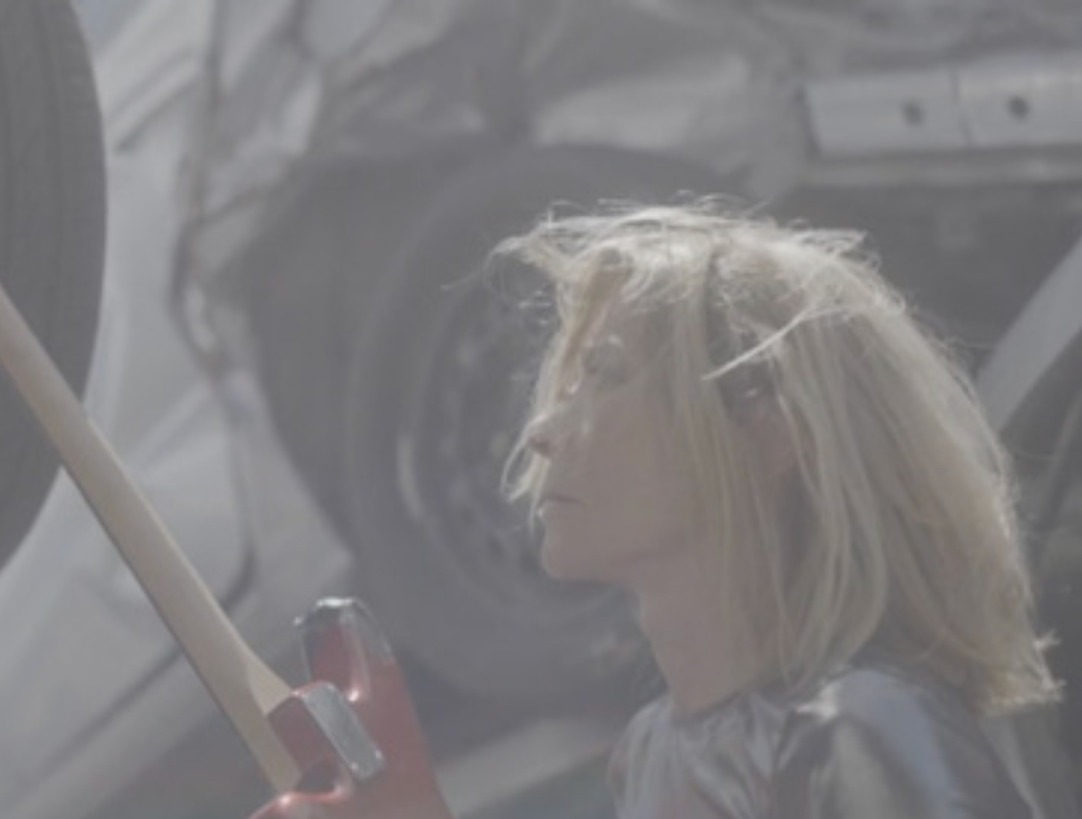 Dans la vidéo 12341 Brandford St, Sun Valley, elle joue de la guitare électrique au contact des carrosseries empilées dans un cimetière de voitures, déplaçant ses expérimentations électriques de la scène de concert au décor crépusculaire d’un monde qui s’étouffe. «Comme si elle se trouvait dans le futur, elle se déplace parmi les épaves de voitures empilées les unes sur les autres, d’abord timidement. C’est une étrangère, une interlope, une alien. Elle est attirée par les voitures et commence à frotter sa guitare contre les machines mortes, créant des sons au gré de son. C’est une sorte de récupération du métal inutile. C’est l’envers de la culture de consommation. Les publicités pour les voitures ressemblent souvent à des paysages idylliques, la voiture filant à toute allure dans un désert magnifique, sur une route sinueuse et boisée ou dans des rues scintillantes appartenant à des nuits urbaines, dans une vision existentielle de liberté et de joie. La casse est un paysage caché ou oublié qui véhicule des histoires silencieuses de violence et de rêves.» KG