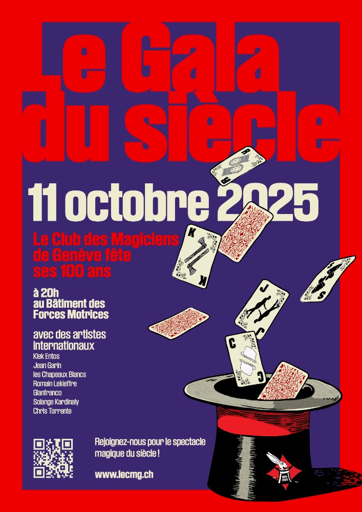 À l’occasion de ses 100 ans, le Club des Magiciens de Genève vous invite à un spectacle exceptionnel, réunissant sur scène des artistes magiciens de renommée internationale, primés dans les plus grands concours mondiaux.