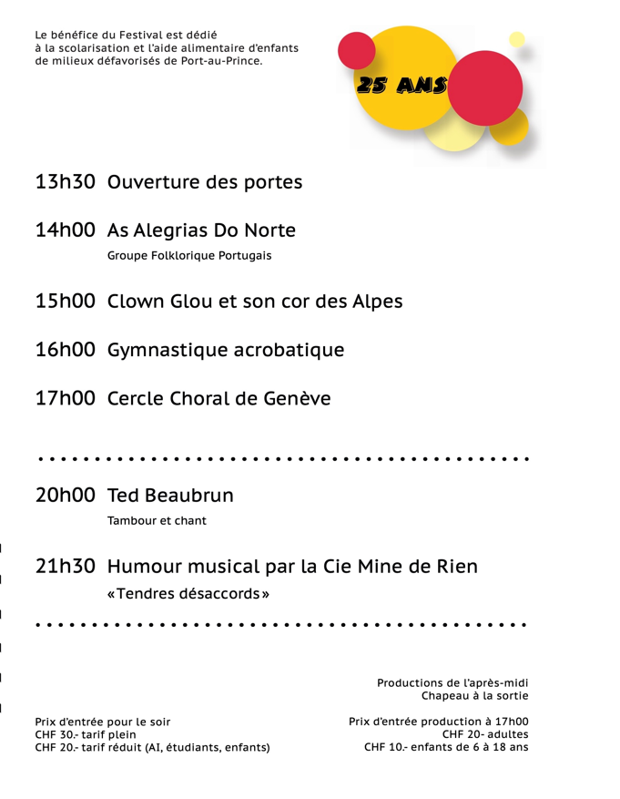 Festival pour Haïti, un programme pluriculturel proposé par l'association Lumière pour Haïti à découvrir le 14 mai 2022 à la Salle communale d'Onex.