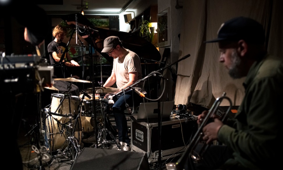 Nicolas Field, batterie, électronique - Thomas Florin, piano - Jérôme Noetinger, électronique, magnétophone Revox - Nate Wooley, trompette - Fritz Welch, voix