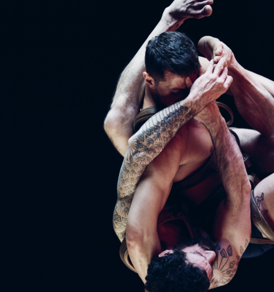 Au plus près des spectateurs, répartis des deux côtés de la scène, harnachés de cuir, ils s’agrippent, se rejettent, se chevauchent, jusqu’à ne former plus qu’un seul être, mi-humain mi-animal, une sorte de centaure, ou plutôt une chimère, créature issue de la mythologie grecque!