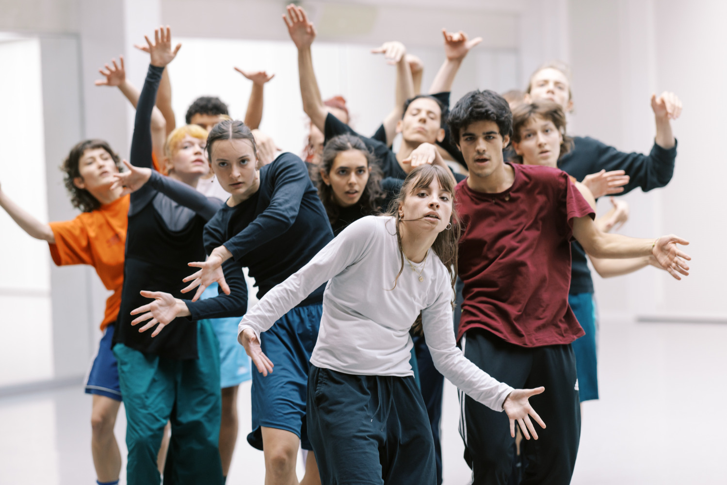 Le Ballet Junior de Genève réunit quarante et un·e jeunes danseurs et danseuses et propose au public de découvrir en une soirée une série de pièces de quatre chorégraphes importants de la création contemporaine en danse.
