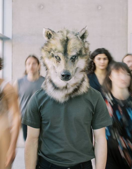 Un tableau arpentant les états de peur et d’effroi est marqué par le recours à des masques de loup imaginés par l’artiste pluridisciplinaire Nagi Gianni. Il est empreint d’une dimension plus psychique fantasmatique, inconsciente et somatique. Partie à l’intuition, je lui ai demandé si les masques de loup ouvraient à des expérimentations.