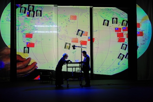 Conçu par le metteur en scène suisse Stefan Kaegi (Rimini Protokoll), ce spectacle met en lumière les défis politiques et diplomatiques uniques auxquels Taïwan est confronté depuis son expulsion des Nations unies en 1971. Trois personnes issues de l’île, un ex-diplomate et retraité favorable à la Chine populaire, une activiste de la Toile et une musicienne héritière d’une société de thé à bulles croisent leurs récits intimes, photos, activités et regards.