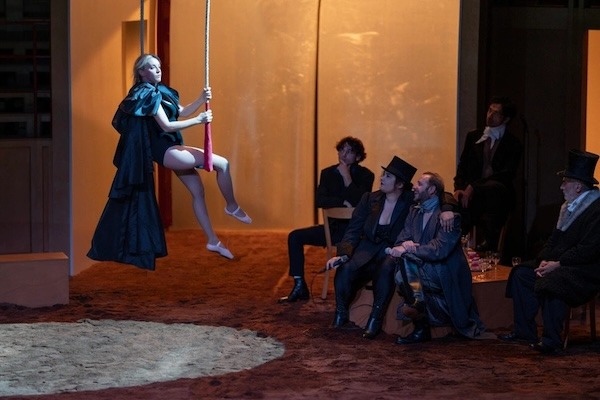 Il y a effectivement une citation de Lola Montès au point de départ: une femme recueillie par un cirque, guidée par une Madame Loyale - ici Marlène Saldana. Mais la singularité de Christophe tient à la manière de mêler ses références et de les ramener à son écriture de plateau.