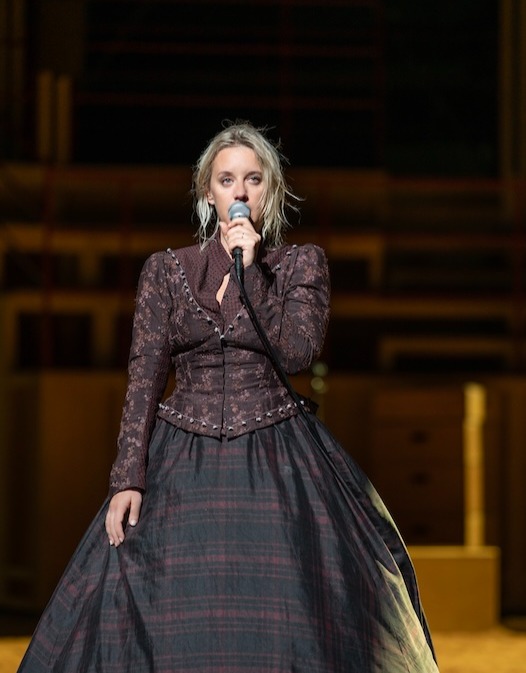 Le spectacle, en répétition encore, mais déjà habité, frappe par son dispositif : arène de cirque, trapèze, gradins, caméras qui traquent Emma jusqu’à l’indiscrétion.