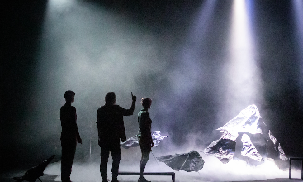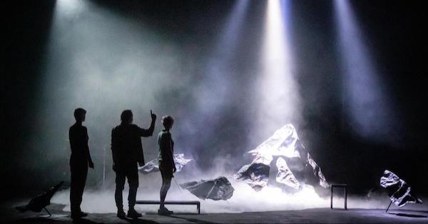 Les images, c’est Olivier Werner qui les a orchestrées, avec toute l’équipe de création bien sûr. Il n’était évidemment pas question de faire semblant de grimper une montagne ou de sortir des piolets… incarner de façon plus ou moins réaliste des alpinistes à plus de 8000 mètres aurait été impensable. L’idée dramaturgie première, c’était d’assumer pleinement la dimension de récit choral, et de permettre à chaque spectateur et spectatrice d’imaginer, par les mots, sa propre fiction de l’histoire.