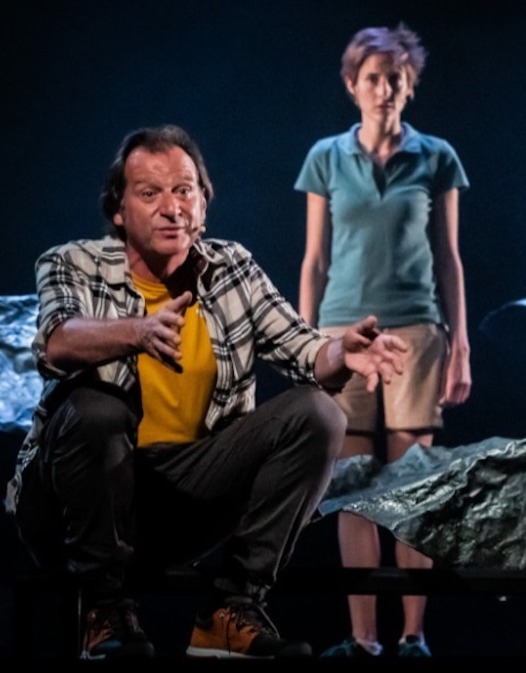 Chaque interprète apporte une certaine palette de couleurs, de facettes au personnage de Messner. Car il faut bien être au moins trois pour incarner le cerveau en ébullition d’un tel homme, en proie à cette situation extrême. Pierre-Isaïe Duc représente peut-être la partie la plus brute de Messner. Celui qui avance, qui physiquement ne lâche rien, dans une forme d’acharnement. Céline Goormaghtigh incarne davantage la conscience technique, scientifique de Messner. Son pragmatisme dans les moments les plus déroutants.