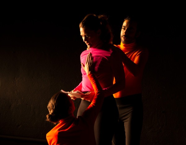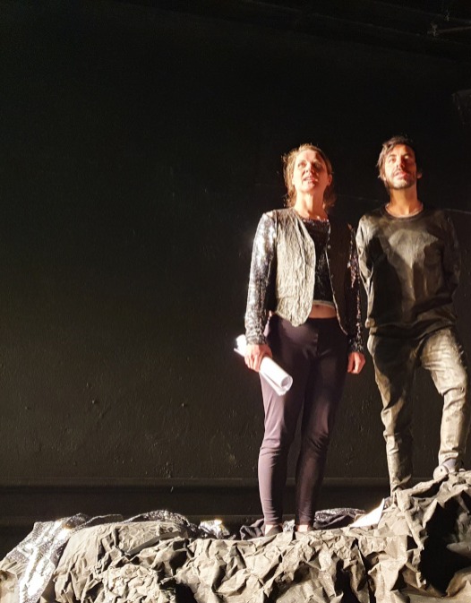 Dans sa forme semi-improvisée, la pièce montre précisément ce perpétuel réajustement dans lequel sont ses interprètes. Qui doivent raconter cette histoire. Cela dévoile que le trio est continument dans le péril de se cristalliser, figer dans un sens ou dans l’autre Et c’est précisément ce danger qui est moteur de jeu pour le collectif d’interprètes.
