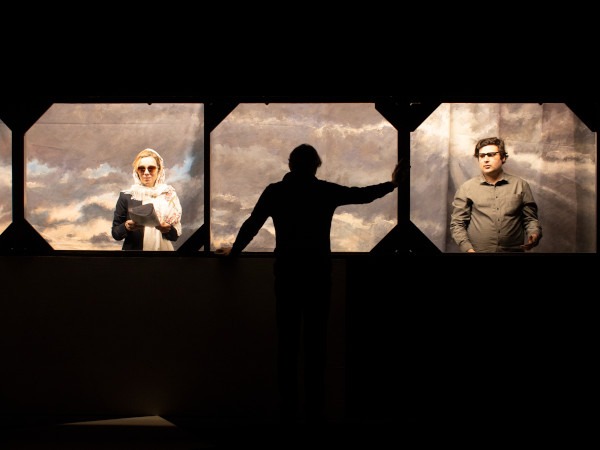 Oui, je me suis souvenu de L’histoire des deux Juan Luis Martinez paru dans Le Temps. Nous avons ainsi réalisé des recherches de récits parallèles comme mise en forme d’un rapport au monde, au temps et à l’Histoire. En répétition, le travail s’est ainsi développé autour de trois personnes narrant des histoires en parallèle avant de les relier en créant des ponts entre elles. Le texte de la pièce s’est écrit dans le va-et-vient entre le plateau, la salle de répétition et l’écriture.
