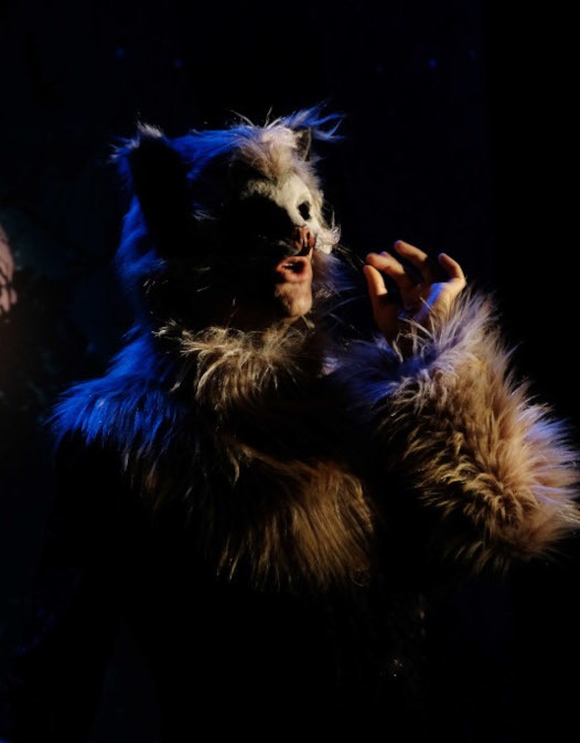 La création aborde naturellement différemment le monde ordinaire et l’univers merveilleux. Ainsi les animaux humanisés sont incarnés par un jeu de demi-masques recouvrant le haut du visage. Ils n’ont rien à voir avec les masques typiques de la commedia dell’arte, style Arlequin, Il s’agit d’hommes-animaux. Mais nous ne figurons pas un chat avec un comédien évoluant à quatre pattes ou manipulant une marionnette féline.