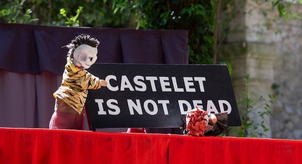 Pour Castelet is not dead, ce que j’ai conservé de son geste, c’est le castelet lui-même et l’idée de reprendre une forme traditionnelle pour la confronter à des écritures d’aujourd’hui. C’est le cœur de son travail avec notamment des textes du dramaturge allemand Heiner Müller, et j’y suis restée fidèle.