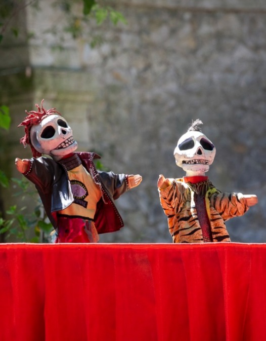 Entre les sketchs, deux figures de punks à têtes de morts traversent le spectacle comme des éclaireurs insolents. Ils rappellent que la marionnette, même minuscule, peut dire le monde avec une liberté rare.