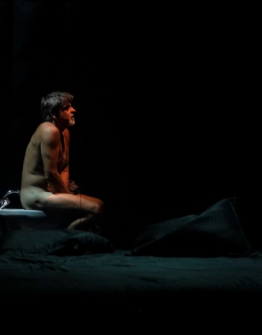Ce choix place le public dans l'esprit nocturne et dystopique de Jacques. Même dans les scènes d'amour, il est seul sur scène face à ces projections. Cela renforce totalement l'idée que nous sommes dans le fantasme pur, et non dans une étreinte partagée, ce qui donne une dimension bien plus intéressante à sa solitude et une lecture plus aigüe du personnage.