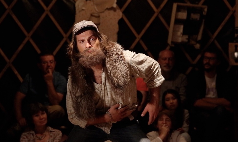 Sous le regard d’un œil extérieur, Pierre Déaux, assurant la co-écriture la mise en scène, le spectacle s’est échafaudé sur la base de dérives et d’accidents relativement au projet initial. Ce qui me plait dans la yourte? Il s’agit d’un objet immédiatement contextuel. Entrant dans une yourte, on se dit volontiers être chez quelqu’un. En l’occurrence chez Boris.