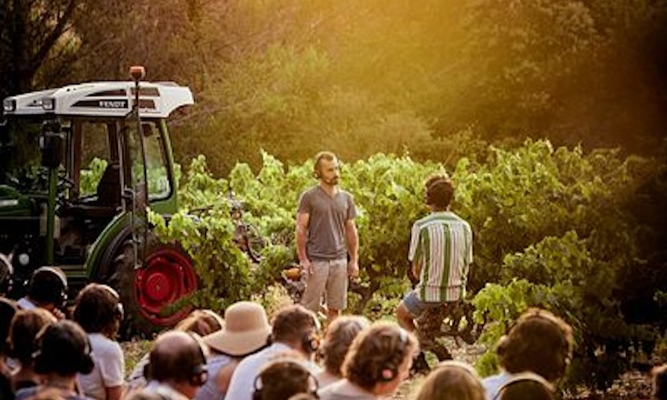 Pièce pour champ qui se joue en plein air, Alouettes propose de s’installer face à un champ agricole, muni de casques audio.