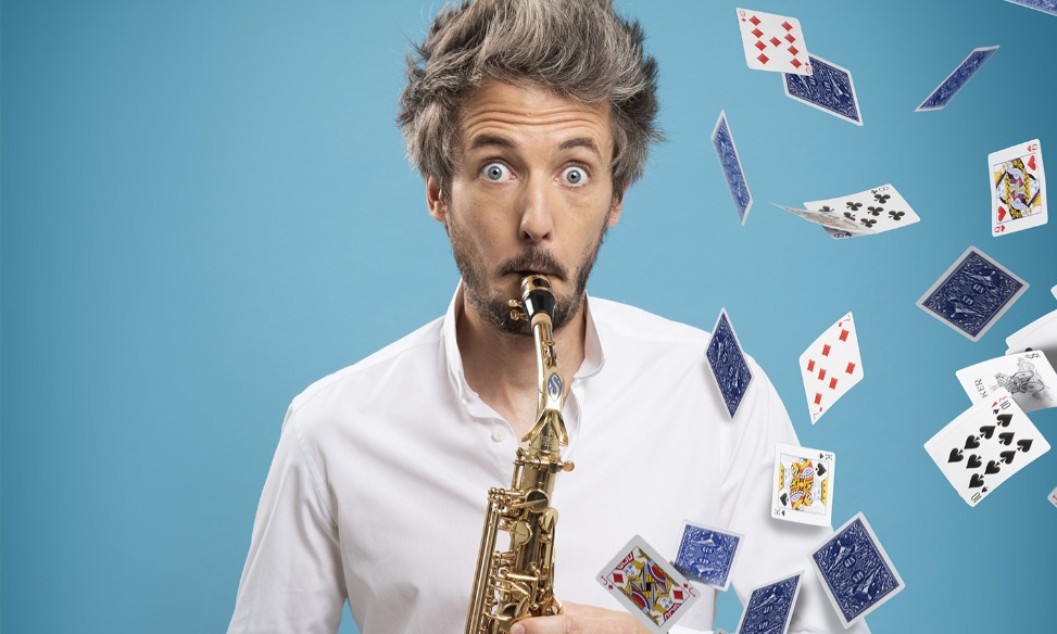 Avec son nouveau spectacle il concocte, une fois de plus, une apparition pleine de folie. Fidèle à lui-même avec un show interactif et poétique, c’est son humour hors norme et ses nouvelles illusions qui feront voyager le public jusqu’en haute montagne.