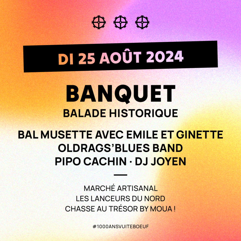 Pour marquer les 1000 ans de la communue de Vuiteboeuf, un super week end de fête est organisé du vendredi 23 au dimanche 25 août 2024.