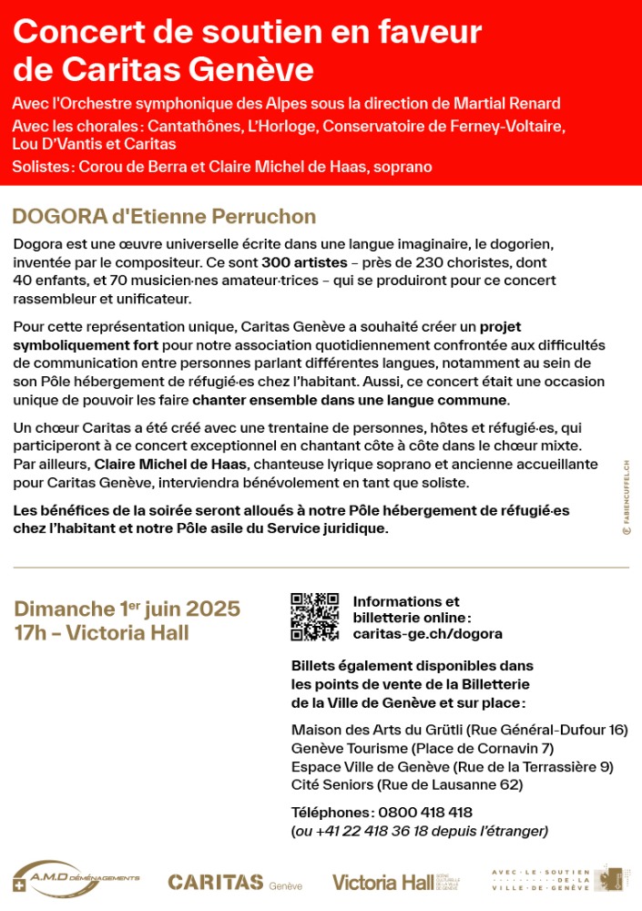 Caritas Genève, à travers son Pôle hébergement de réfugié∙es chez l’habitant, accompagne des personnes ou familles d’accueil ainsi que les réfugié∙es qu’elles hébergent. - qui se produiront dans le prestigieux Victoria Hall pour ce projet rassembleur et unificateur.