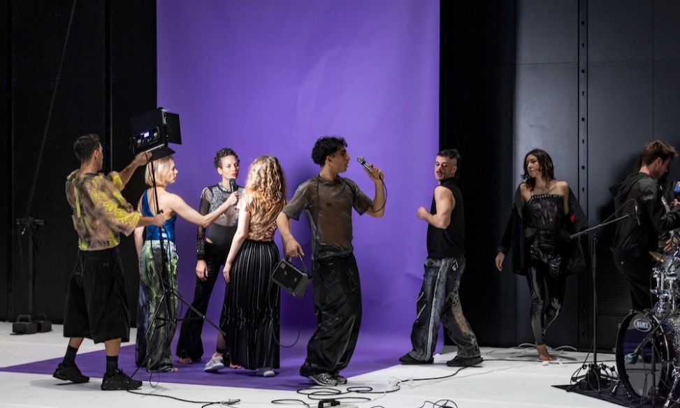 Cette énergie se déploie grâce au groupe, à travers des phrases chorégraphiques courtes et répétitives. L’image centrale est celle d’un studio de cinéma à ciel ouvert, avec des micro-scènes réparties sur le plateau.