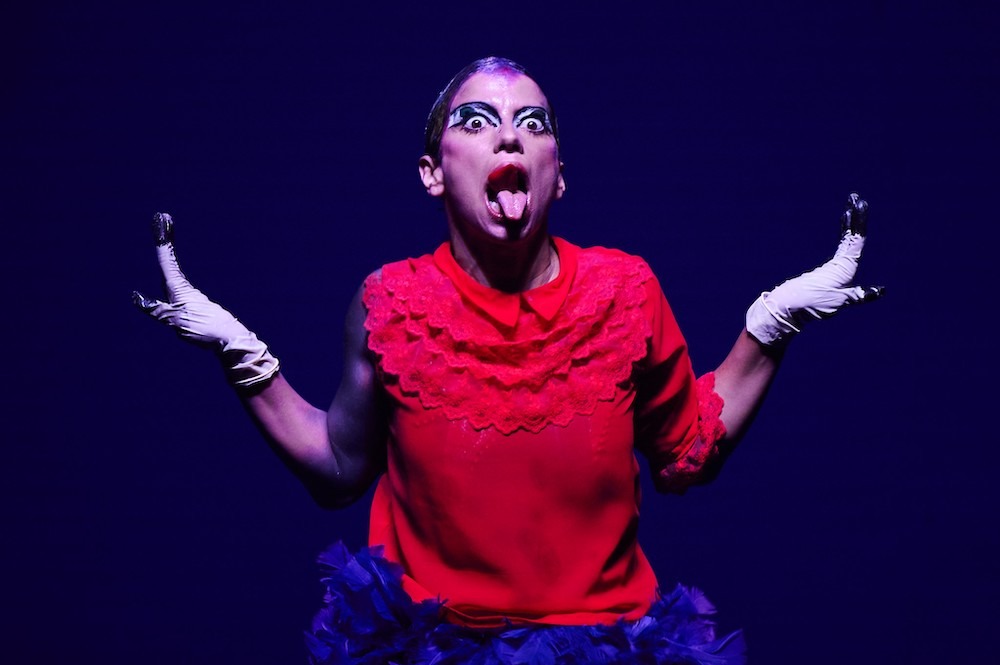 La danseuse et chorégraphe Marlene Monteiro Freitas incarne Guintche, un personnage affamé d’énergie carnavalesque, clown des paradoxes et pantin en diable, accompagnée par deux batteurs virtuoses.