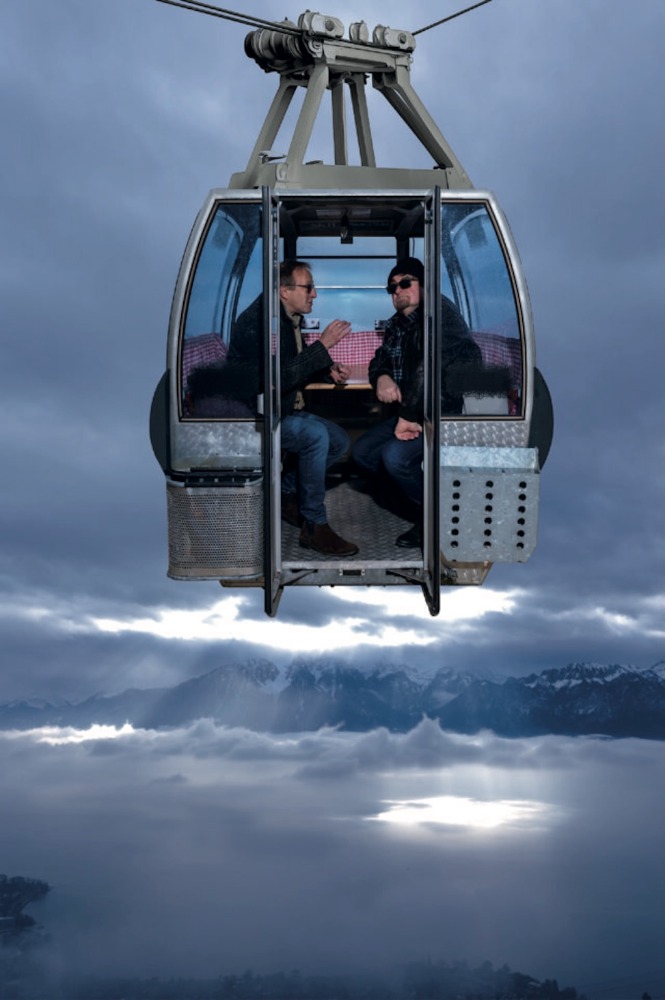 Une station de ski huppée dans les Alpes. Deux hommes se retrouvent face à face dans une télécabine.