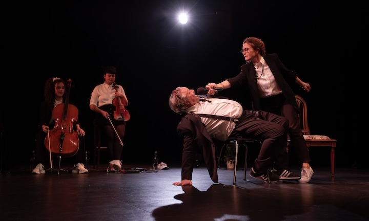 Portée sur scène par quatre interprètes de trente à cinquante ans, dont la fougue contraste avec l’âge réel des personnages, cette pièce est un carnaval philosophique sentimental tragiquement drôle et absurde, qu’un accompagnement musical à l’alto et au violoncelle vient sublimer.