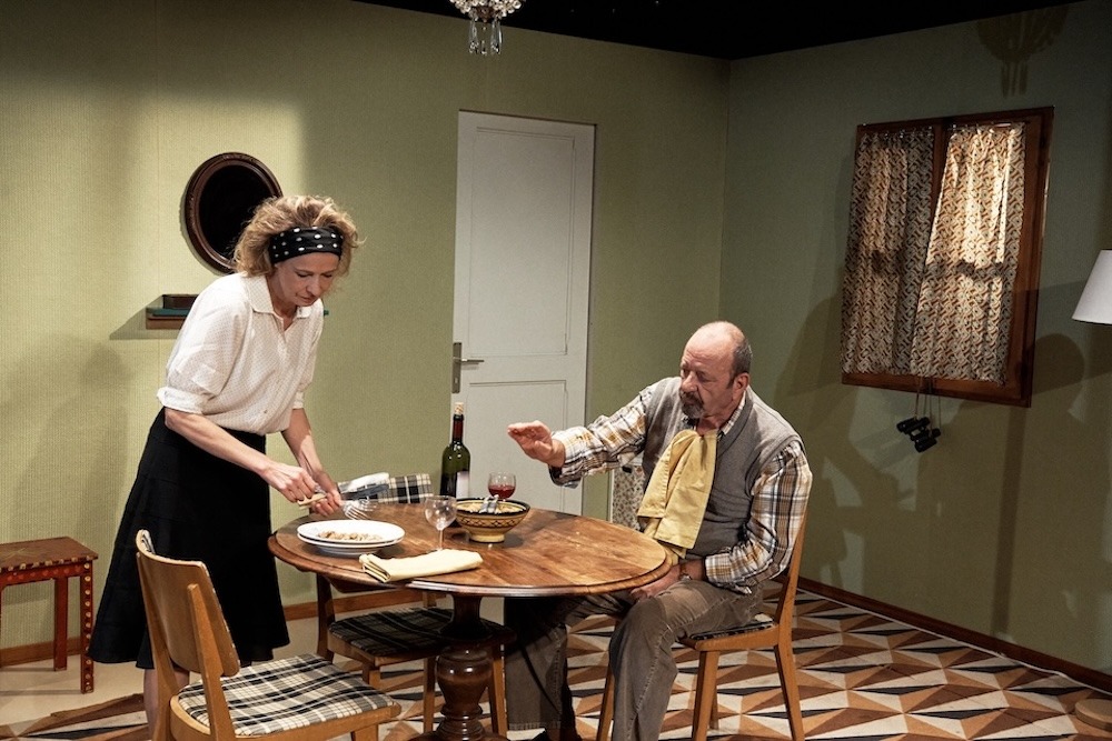 Un couple au quotidien, un soir d’automne, aux alentours de vingt heures quinze. Ils finissent de dîner et attendent un camarade d’enfance qui doit venir prendre le café.