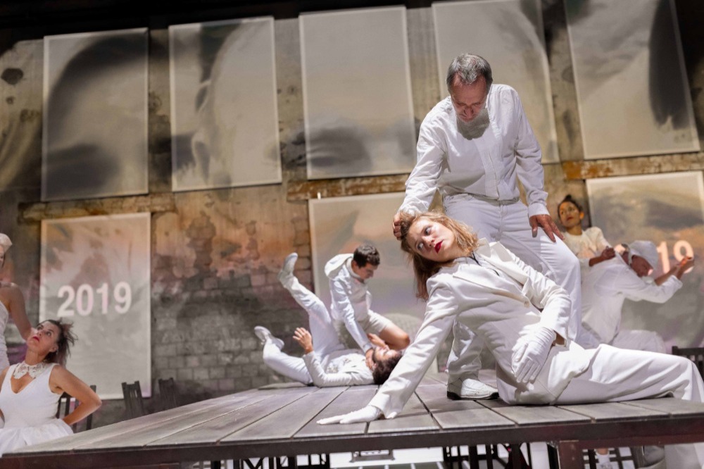 Evelyne Castellino avec les artistes, mise en scène et chorégraphie