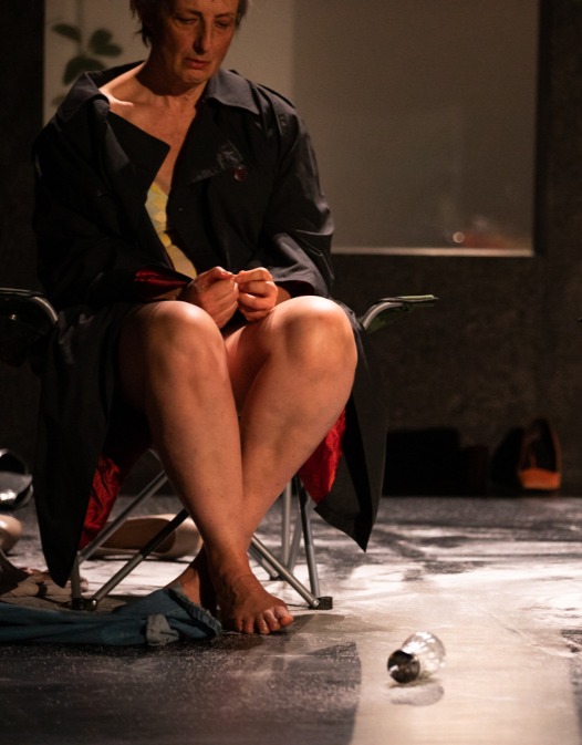 Autour de ces figures tutélaires de la mise en jeu de soi au fil de fécondes expérimentations, la jeune metteure en scène Sarah Calcine a posé une atmosphère à mi-chemin entre jeu mis en abyme et drame beckettien de la solitude existentielle. Rencontre.