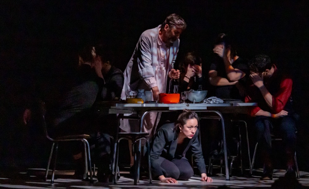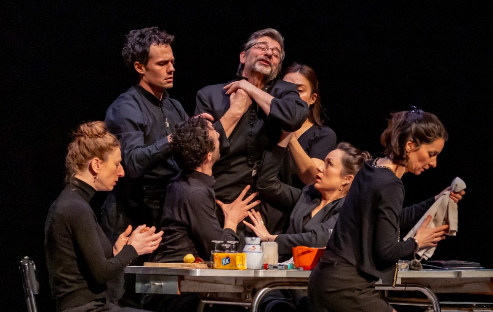 Nous sommes le jour de l’enterrement de la mère. Tout se joue ensuite dans la cuisine familiale, espace étroit et saturé. La fratrie se retrouve avec ses morts, ses rancunes et ses mots comme des lames. .