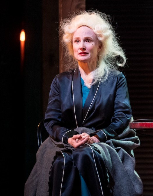 Les perruques sont la seule marque de l’époque de Marivaux dans une scénographie épurée et des habits de scène se rapprochant du siècle dernier. Les différences entre les personnages se marquent davantage sur le cérébral et le langage, la posture et l’expression. Moins sur le vêtement. Cependant les figures aristocratiques ont droit au peignoir qui suggère leur condition et domination dans la société d’Ancien Régime.
