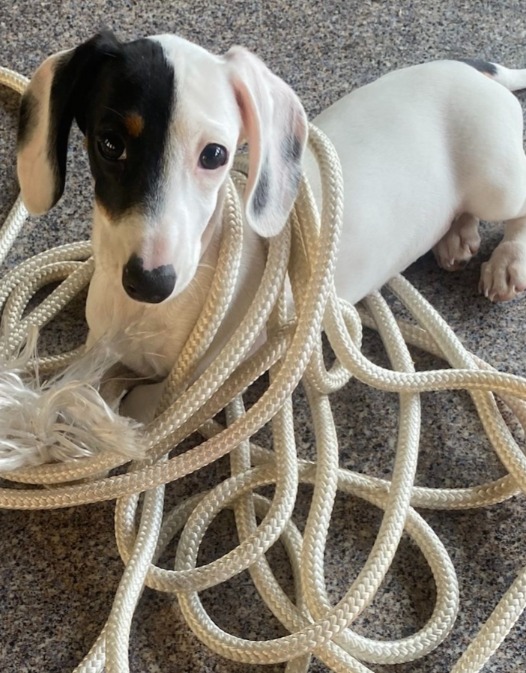 Comme nous, les chiens ont leurs préférences : certains adorent les balles, d’autres les cordes. Pelote, elle, raffole des cordes - donc il y en a une dans le spectacle.