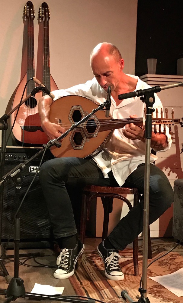 Dimitri Zambragkis, chant, oud, diplo laouto, pandouras, rebab - Antoine Bourgeau, tabla, udu, bendir, gong, cymbales, sonnailles