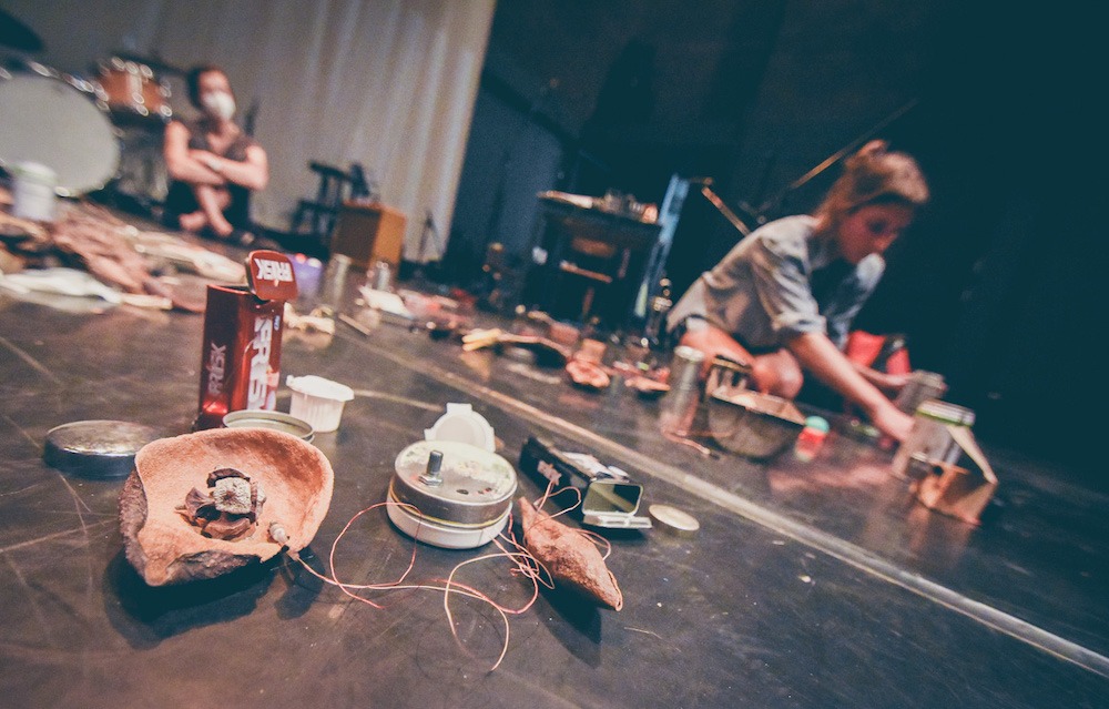 L’artiste utilise des objets trouvés et des instruments électroacoustiques, qu’elle fabrique pour créer un paysage où des matériaux élémentaires trouvent de nouvelles significations dans leurs connexions spontanées. Ils bougent, résonnent et produisent de minuscules bruissements, craquements et grincements. Ces objets se transforment en nouvelles entités, des créatures sonores spécifiques ayant leurs qualités propres et qui interagissent entre eux.