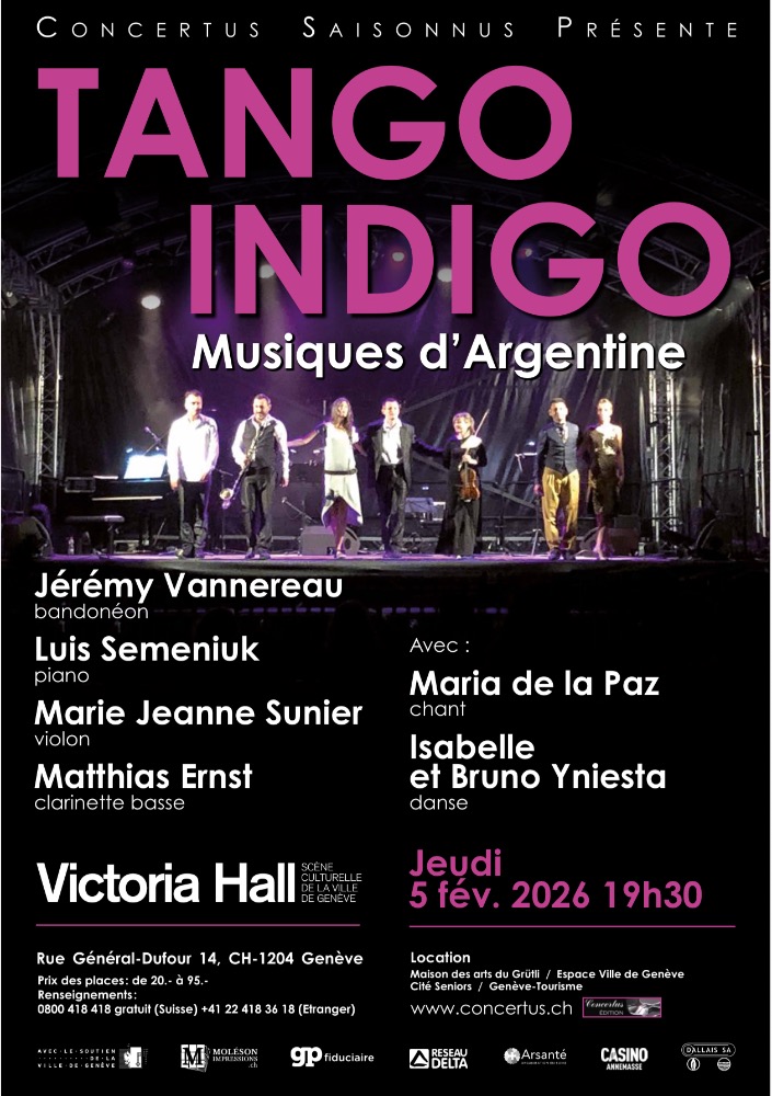 Tango, un spectacle musical avec Tango indigo et Maria de la Paz à découvrir le 5 février 2026 Victoria Hall, Genève.