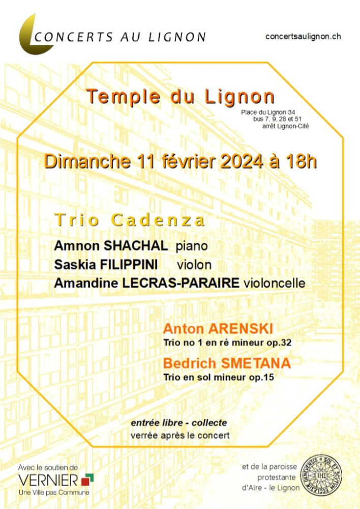 Trio Cadenza, un concert à découvrir le 11 février 2024 au Temple du Lignon, Vernier.