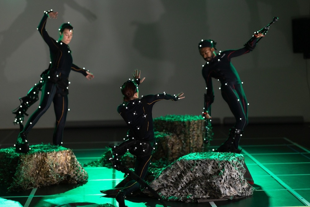 Dans RESET! Beasts and Demons, le système de capture et de digitalisation du mouvement en temps réel est visible pour le public. Les trois interprètes deviennent ainsi les marionnettistes de leurs corps virtuels projetés sur des écrans sur le plateau: avatars humanoïdes, monstres et démons cohabitent et s’affrontent dans des paysages fantastiques, la scène de l’ADC fonctionne comme un portail vers d’autres mondes.
